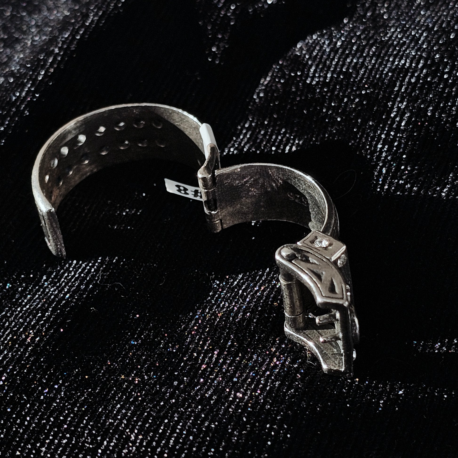 This distinctive sterling silver men's ring reimagines the classic belt buckle with refined elegance. Featuring an adjustable design that accommodates sizes 7.5-10, it opens to reveal intricate detailing that sets it apart from conventional rings. Crafted from authentic sterling silver, this piece combines functional artistry with timeless sophistication, making it an exceptional statement accessory for the discerning gentleman.