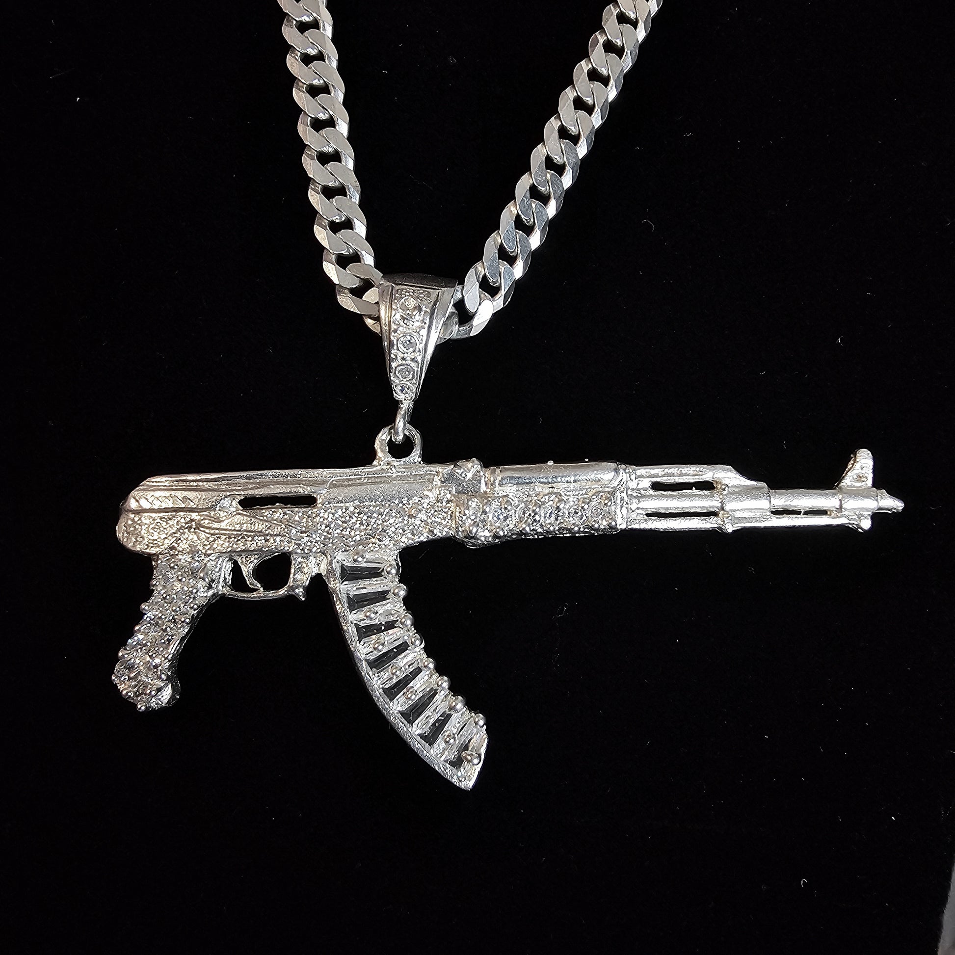 The AK-47 pendant is a striking and edgy accessory designed to make a powerful fashion statement. Inspired by the iconic silhouette of the AK-47 rifle, this pendant blends rugged symbolism with contemporary streetwear style. Perfect for those who embrace bold fashion and aren’t afraid to stand out.