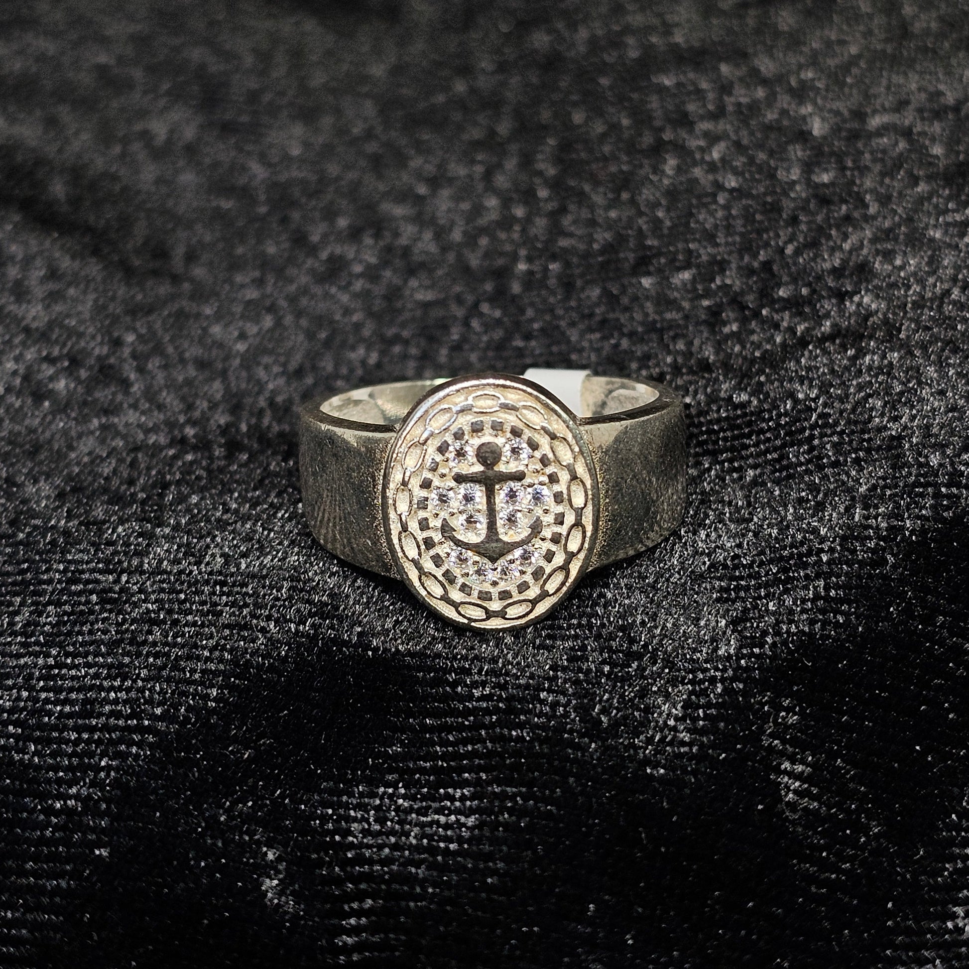 Anchor Unisex Sterling Silver Ring with CZ Stones