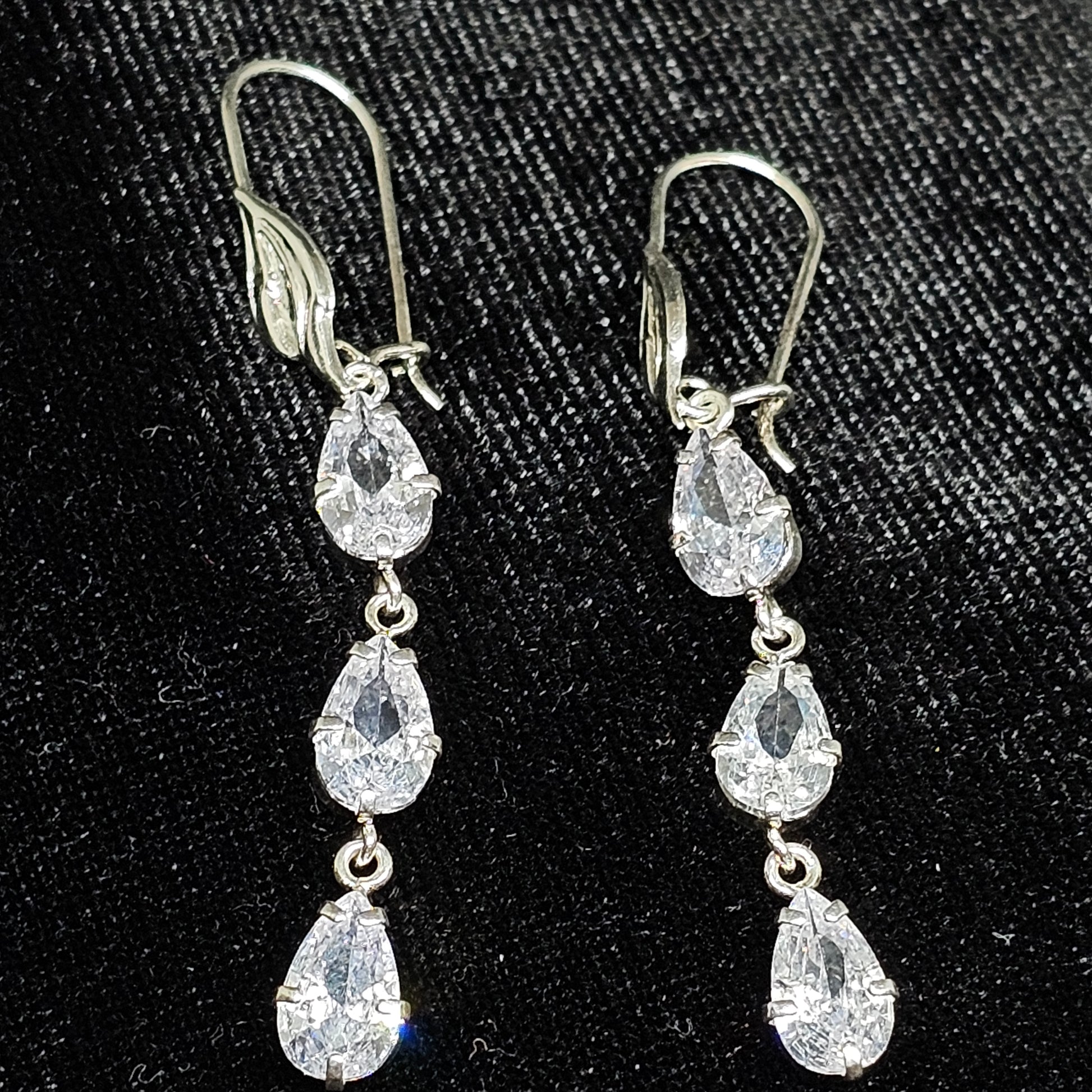 Elevate your everyday elegance with these refined dangle earrings, crafted from authentic 925 sterling silver. Each piece features brilliant cubic zirconia stones that catch the light with stunning sparkle, delivering the luminous beauty of fine gemstones at an accessible price point. The graceful dangling design adds movement and dimension to any look, from casual outings to special occasions.