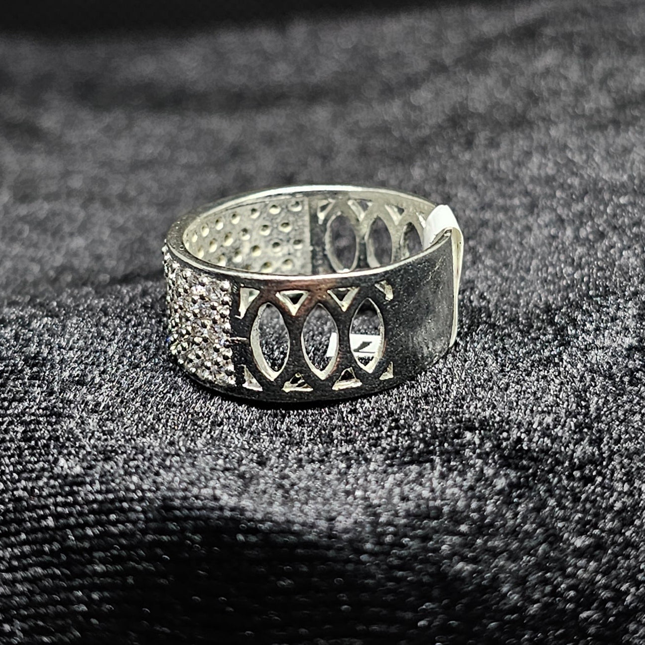 Iced Thick Band Silver Ring